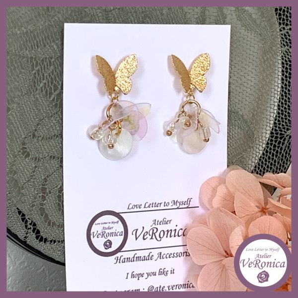 蝶のスパンコールピアス ハンドメイド ピアス 蝶 シェル ゴールド 小さめ レディース おしゃれ かわいい ベロニカ