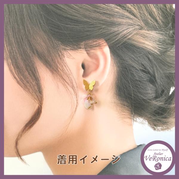 ハンドメイド ピアス 蝶 シェル ゴールド 小さめ かわいい