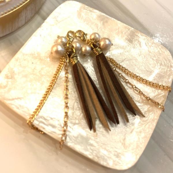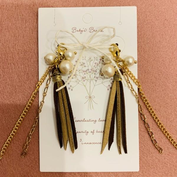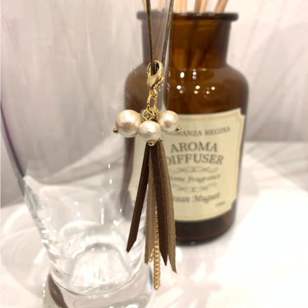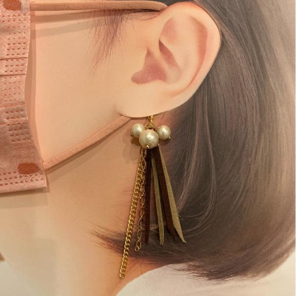 ブラウン★コットンパールとスエード紐のマスクイヤリング ハンドメイド 手作り マスクチャーム チャーム ベロニカ