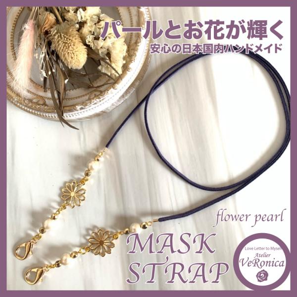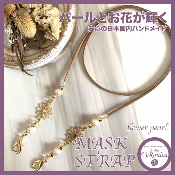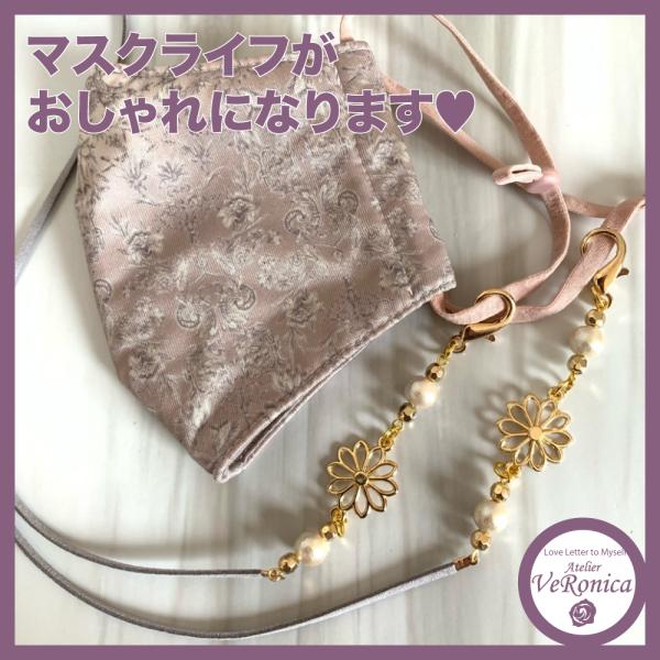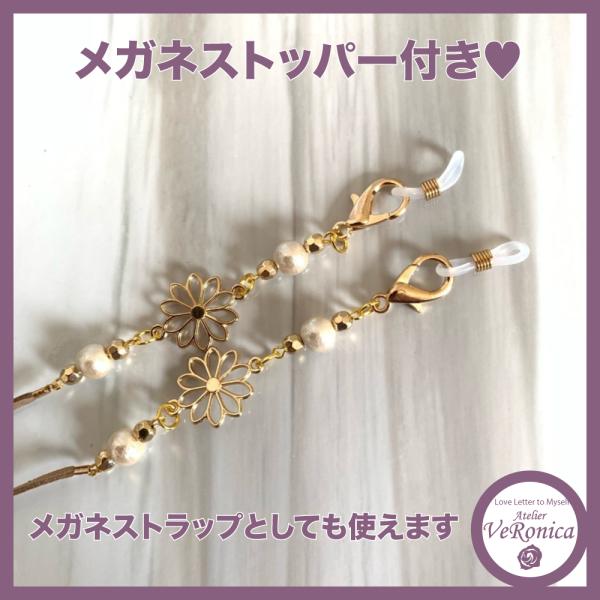 ベージュ★2way★お花のマスクストラップ&メガネストラップ ハンドメイド ベロニカ