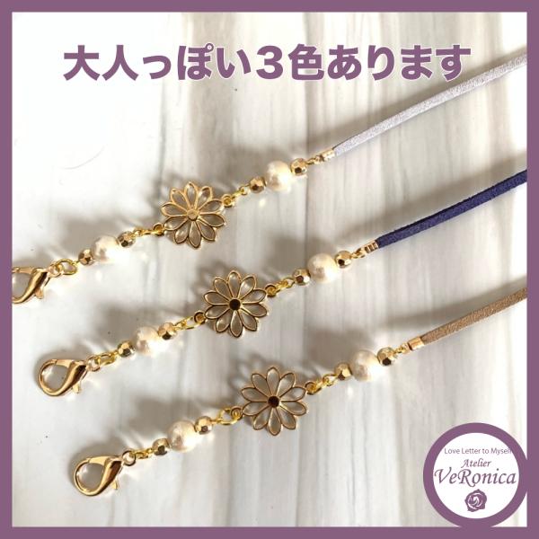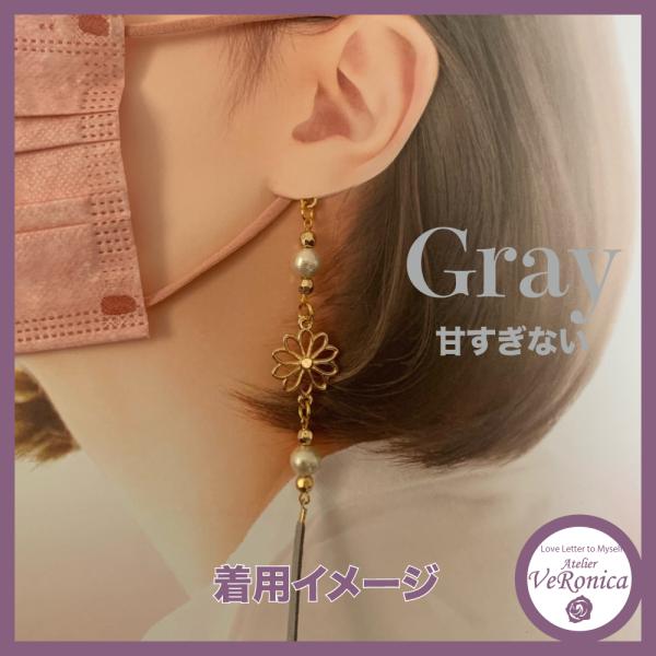 グレー★2way★お花のマスクストラップ&メガネストラップ ハンドメイド ベロニカ