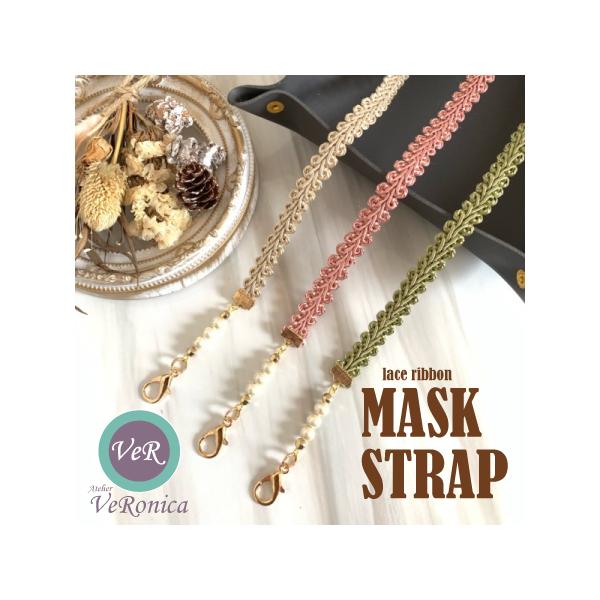 選べる3色★パール3連のレースリボンの2WAYマスクストラップ&メガネストラップ コットンパール ミルクティー ピンク グリーン おしゃれ