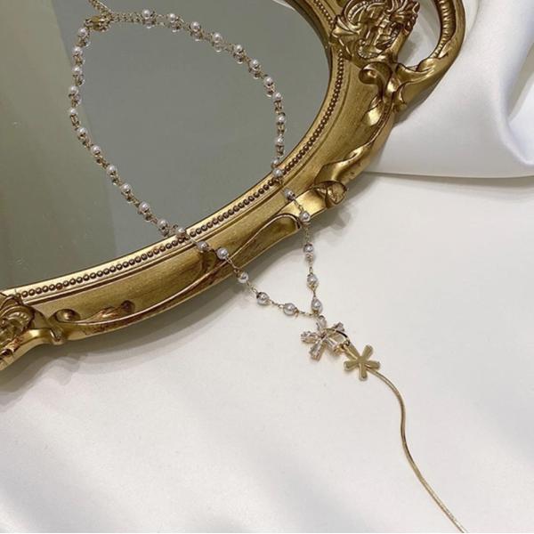 フェミニンな印象のお花とパール。ネックレス おしゃれ