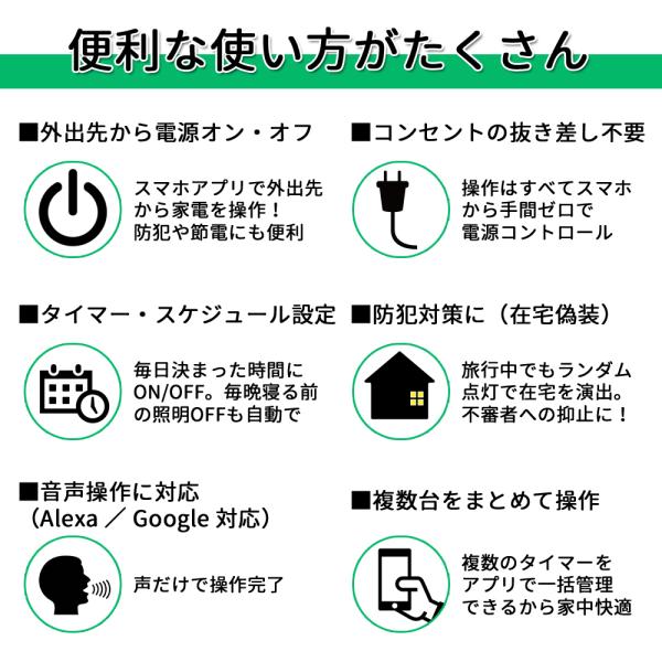 コンセントタイマー プログラムタイマー タイマーコンセント 簡単設置 遠隔操作 工事不要 スマートリモコン リモコン 節電グッズ 電源タイマー