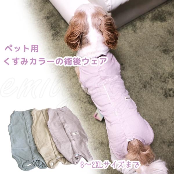 くすみカラーの術後ウェア 犬猫兼用 術後服 術後着 介護ウェア 介護服 ウェア ペット 犬 猫 傷口保護 避妊 去勢 皮膚病 四脚 簡単着脱 傷舐め防止 emilystyle