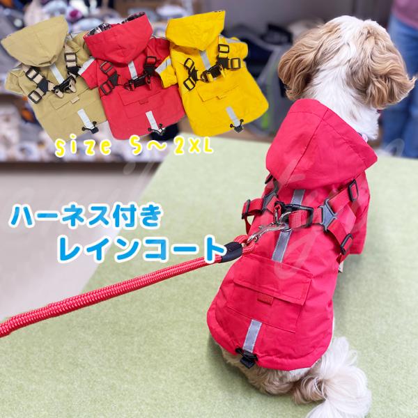 ハーネス付きレインコート カッパ 雨具 犬用 ペットウェア ハーネス 胴輪 お散歩 お出かけ 雨 ドッグ ウェア emilystyle