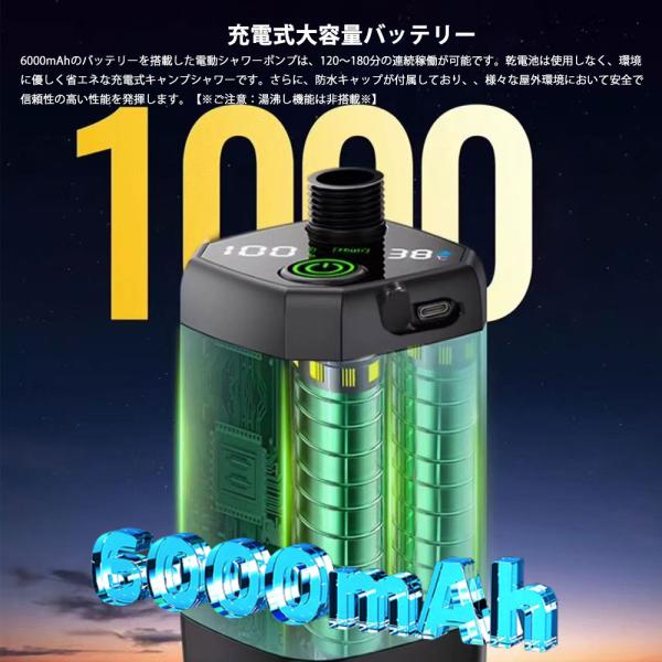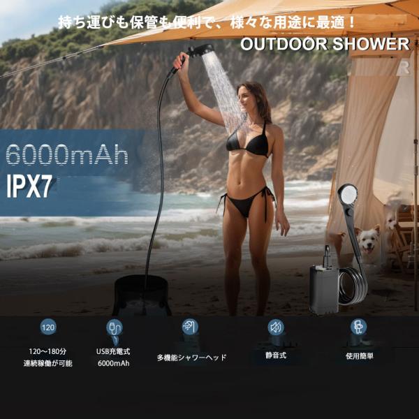 ポータブルシャワー アウトドア USB充電式 6000mAh 強力/節能モード付き 20L折りたたみ式バケツ 電動 キャンプ 水流量無段階調節 釣り 海水浴 洗車 防災
