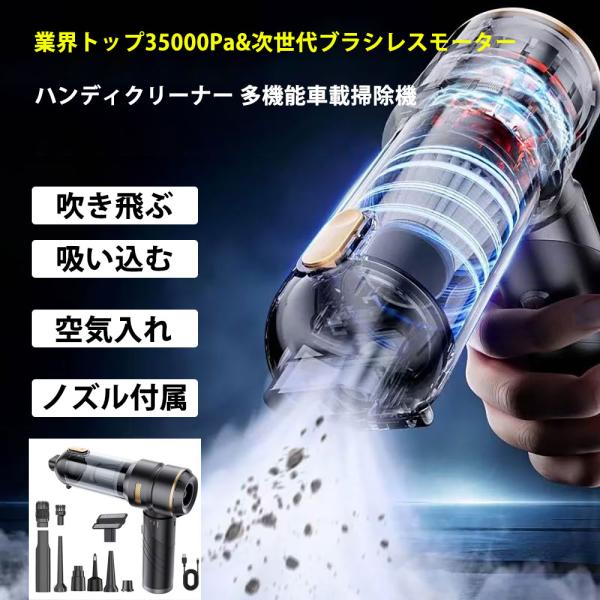 ハンディクリーナー ミニ掃除機 車用掃除機 5000PA 充電式 コードレス 電動エアーポンプ機能 吸引力 強力 整音 乾湿両用