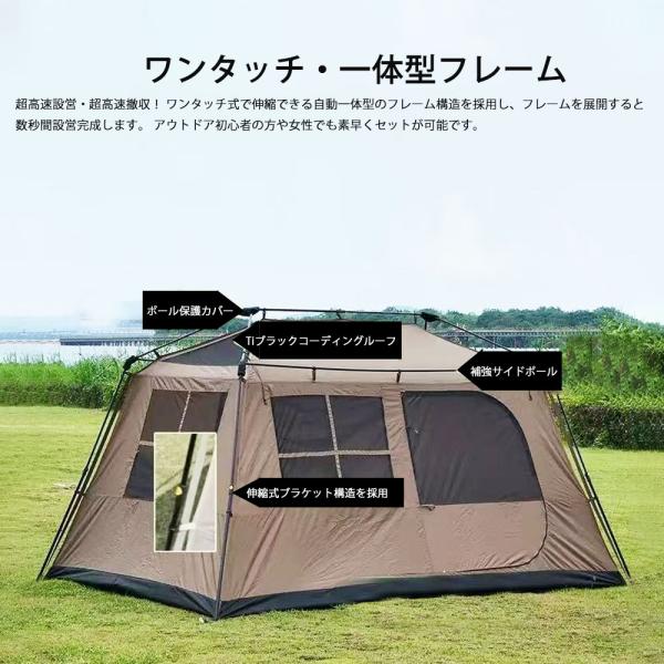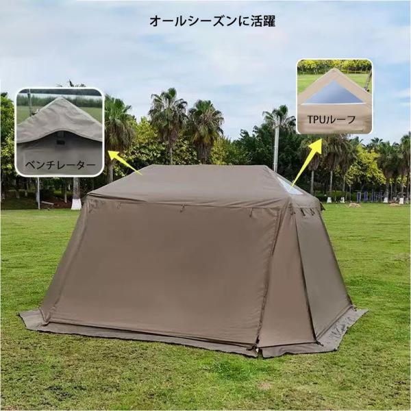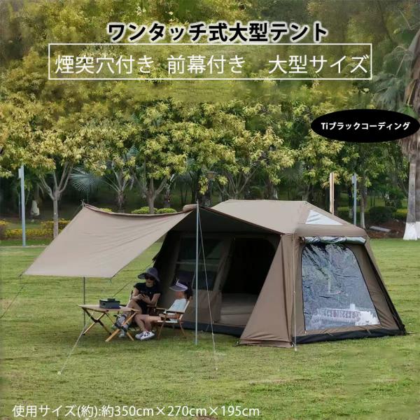大型 ワンタッチテント ロッジ型テント Tiブラックコーディング 拡張キャノピー 前室タープ サイドドア TPU付き 煙突穴付き 収納袋付き 2-6人用 キャンプ