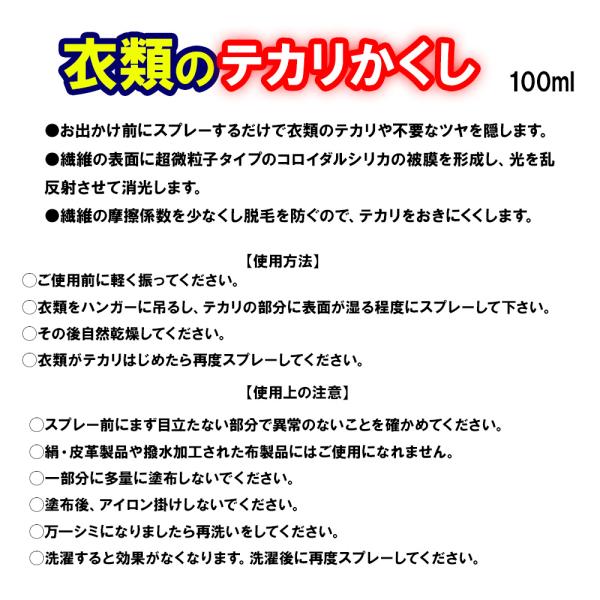 ●お出かけ前にスプレーするだけで衣類のテカリや不要なツヤを隠します。