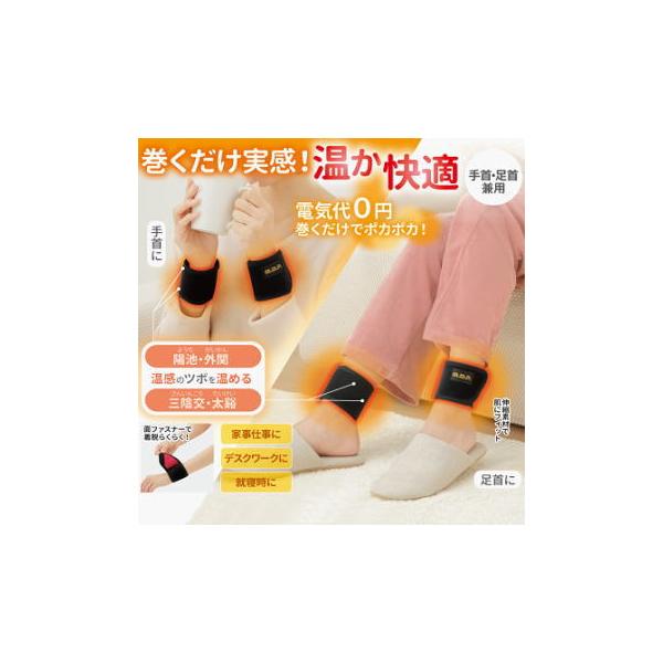 メイダイ ウォーマー ほっとウォーマー 手足首サポーター 手首 足首 温感 温熱 保温 蓄熱 冷え対策 着脱簡単 巻くだけ温快(手首・足首用)ブラック ネコポス