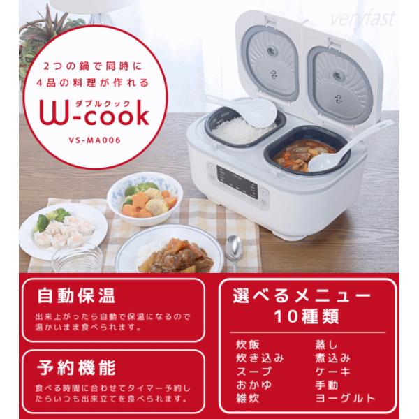 ベルソス 炊飯器 多機能炊飯器 ダブルクック マルチ調理器 ダブル炊飯 マルチクッカー 時短 同時調理 3.5合+3.5合 多機能炊飯器 ダブルクック VS-MA006