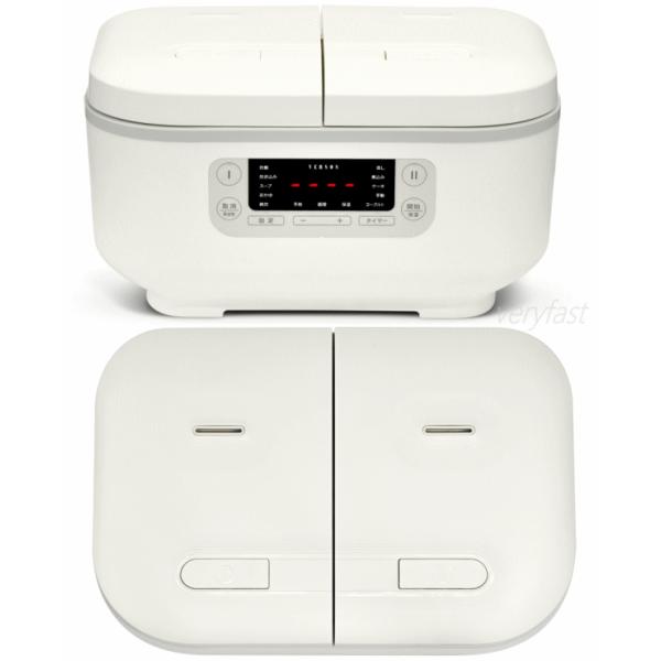 2つの鍋で同時に2品の料理が作れる!ご飯を炊きながら同時におかずも作れちゃう!もちろん片方だけでも使用可能。内釜にはフッ素加工がされているので食材がくっつきにくくお手入れも簡単です。付属の蒸しプレートを使えば蒸し調理も可能!出来上がったら自動で保温になるので温かいまま食べられます。食べる時間に合わせてタイマー予約したらいつも出来立てを食べられます。選べるメニューは炊飯・炊き込み・スープ・おかゆ・雑炊・蒸し・煮込み・ケーキ・手動・ヨーグルトとなんと10種類!■製品サイズ約W345×D235×H195mm■製品重量約3.5kg■電源AC100V 50/60Hz■定格消費電力700W(350W×2)■コードの長さ約1m■材質:プラスチック、シリコーン、金属他■セット内容:本体、内釜×2、蒸しプレート×2、しゃもじ、おたま、計量カップ、取扱説明書(保証書)※本製品は一般家庭用です。業務用等にご使用にならないで下さい。本製品は仕様上6〜12時間まで保温できますが早めに冷蔵庫・冷凍庫での保存をおすすめします。白米以外の保温はしないで下さい。長時間の保温はしないで下さい。 4580750340602