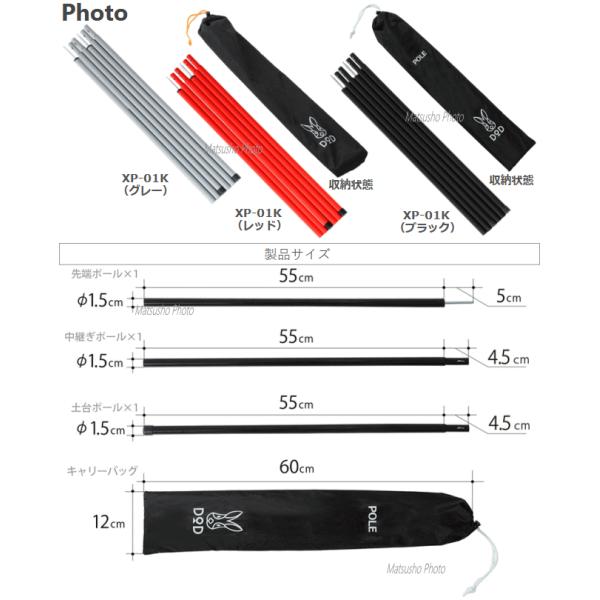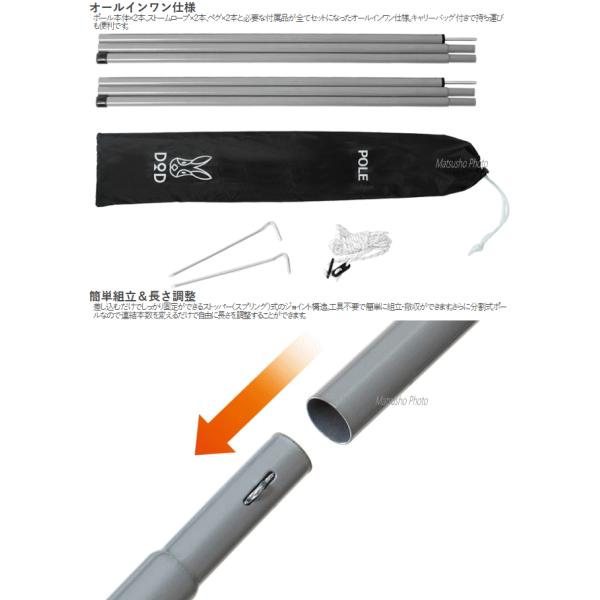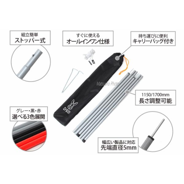 DOD ポール テントポール タープポール キャノピーポール サブポール テント タープ 設営用具 全3色 グレー レッド ブラック テント・タープポール XP-01
