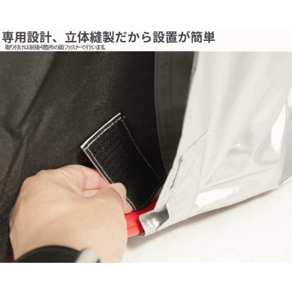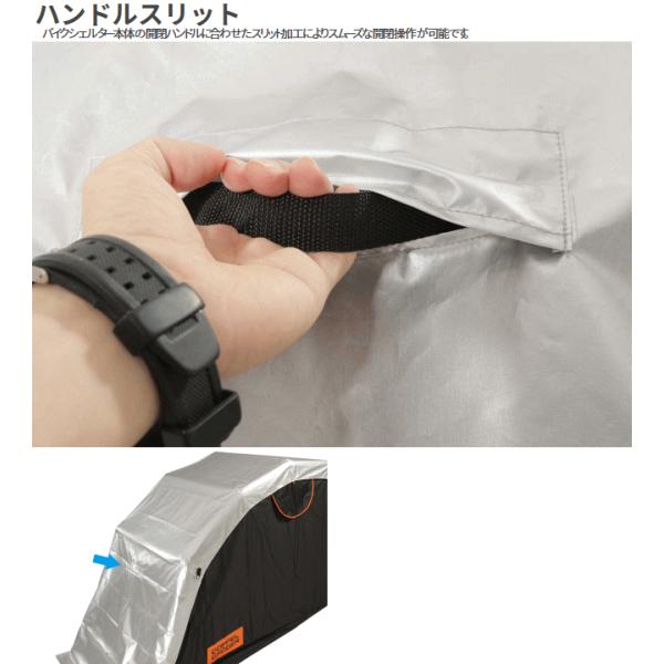 バイクシェルターの屋根を強い日差し、雨から護ります。DCC570バイクシェルター3専用設計。 専用設計、立体縫製だから設置が簡単!取り付けは前後4箇所の面ファスナーで行います。バイクシェルター本体の開閉ハンドルに合わせたスリット加工によりスムーズな開閉操作が可能です。■カラー:シルバー■材質:420Dポリエステル PUコーティング■原産国:中国※次の製品には適合しませんのでご注意下さい。ストレージバイクシェルター DCC244L-BK、ストレージバイクシェルター2 DCC374M-BK※台風等強風時は屋外で使用しないで下さい。降雪時は屋外で使用しないで下さい。防火仕様ではありません。製品周辺で火気の取り扱いを行わないで下さい。本製品の生地には防水撥水加工を施しておりますが雨・風の影響や太陽の紫外線により経年劣化が発生します。製品及び内容物の保護のため大雨や強風等が予想される際は別途対策や一時的な撤去が必要な場合がございます。 4571697232099