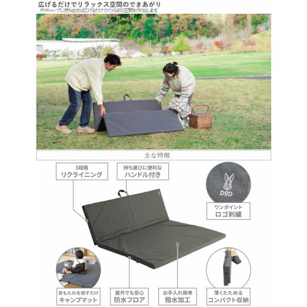 DOD ソファ ロースタイル 折り畳みソファ お座敷スタイル 持ち運び収納 フロアソファ キャンプマット ザシキソファ C2-059-GY グレー メーカー直送【NEW】