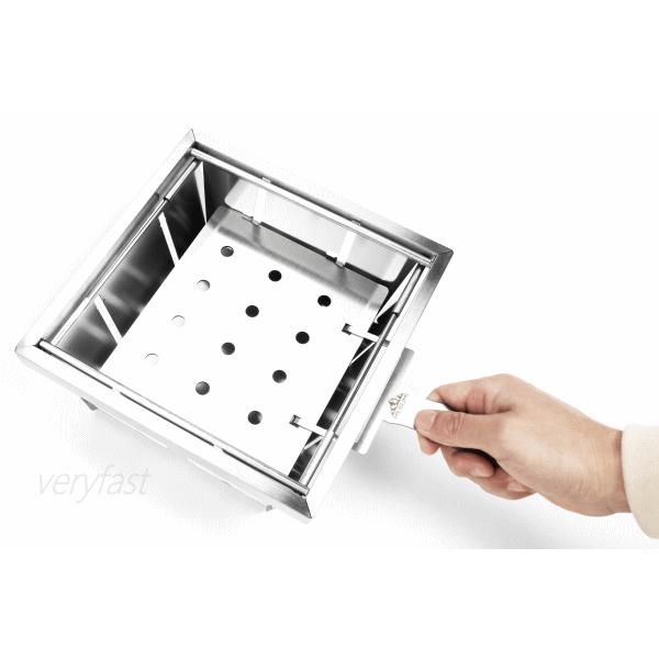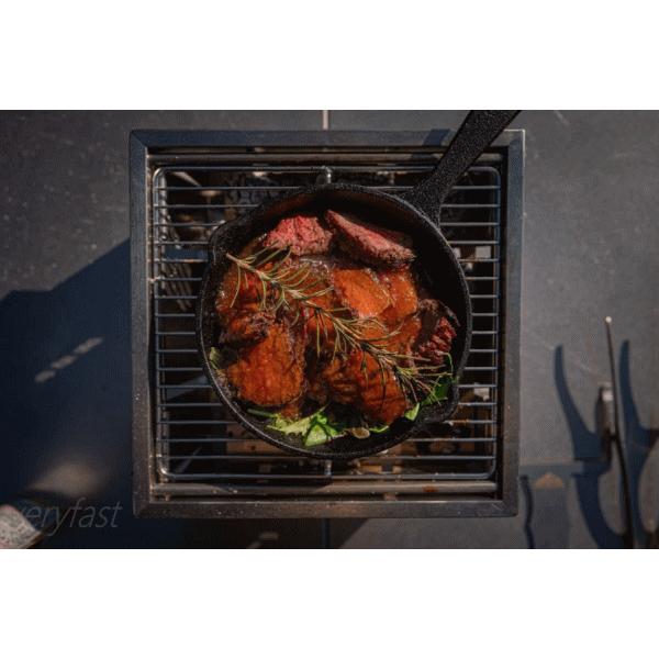 焼き加減を調整できる組立て・収納1秒の折りたたみ式グリル。本体をひっくり返すだけで驚くほどスピーディーに組み立てと撤収が可能です。グリルとしての使用はもちろんスキレットやダッチオーブンにも対応する堅牢な設計。それでいて折りたたむと高さはわずか2cm。まさにパーフェクトなグリルです。ソロキャンプでもファミリーキャンプでも使いやすいちょうどいいサイズのグリルです。付属のリフターを使用することでロストルの高さを3段階に調整できる設計になっており火加減を自在にコントロール可能です。■サイズ[展開時]W21.5×D21.5×H11.5cm[収納時]W21.5×D21.5×H2cm■重量1.5kg■材質:ステンレス■セット内容:グリル本体、専用アミ、リフター■生産国:中国※本製品は使用中の熱により変形する場合があります。本体側面に燃えた燃料が触れるほどたくさんの燃料を入れると変形の要因となります。燃料を側面から離す事で変形を軽減させる事ができます。ロストルが大きく変形した場合は本体から取り外しハンマー等で叩いて歪みを調整して下さい。【ネコポスでのお届け】 4589804103491
