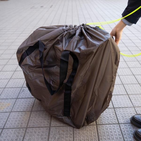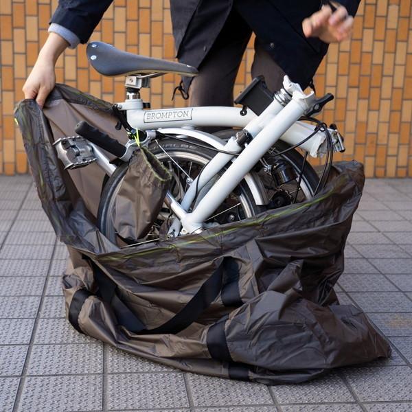 フェアウェザーのフォールディングバイク用輪行袋です。ブロンプトンなどのフォールディングバイク用に作られた大きな巾着型の輪行バッグ。自転車を入れてドローコードを引くだけというとてもシンプルで使いやすいデザインになっています。素材には非常に軽量で引き裂き強度にも優れるインビスタ社のシリコンコートコーデュラリップを使用。滑りの良い素材なので、引っ掛かりが少なくスムーズにパッキングできます。バッグ底面は生地を二重に使うことにより強度を追求。