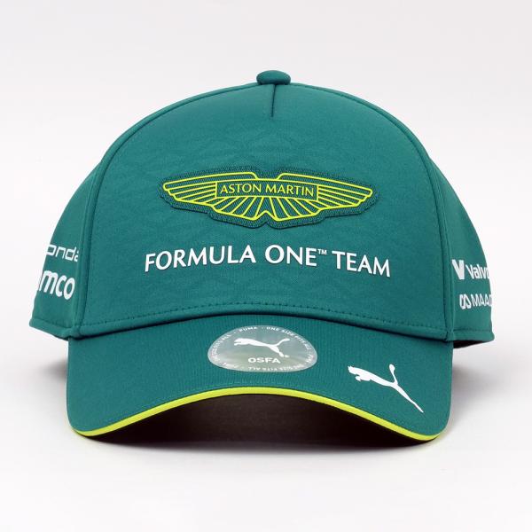 正面にアストンマーチンのチームロゴがワッペンで付いており、その他のロゴは全て白のプリントで仕上げられたベースボールキャップ。