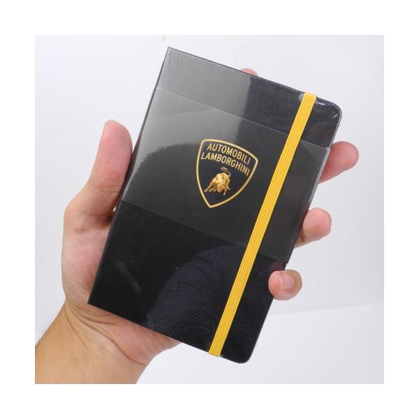 黒い表紙にはランボルギーニのエンブレムがプリントされ、ノート部分は何も書いていない無地で、用紙は保存に適した中性紙を使用しています。