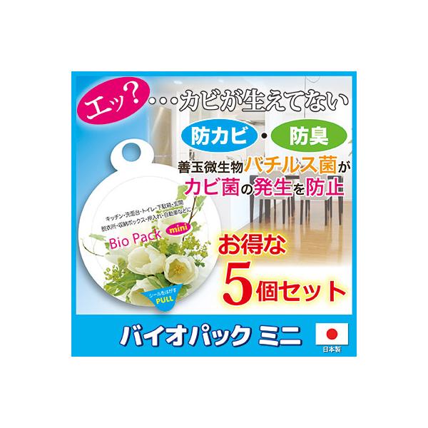 【5個セット】 部屋 防カビ 防臭 バイオパックミニ カビ対策 予防 置くだけ カビ臭 クローゼット トイレ バチルス菌 日本製 メール便 送料無料