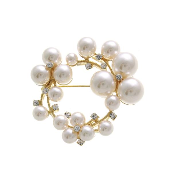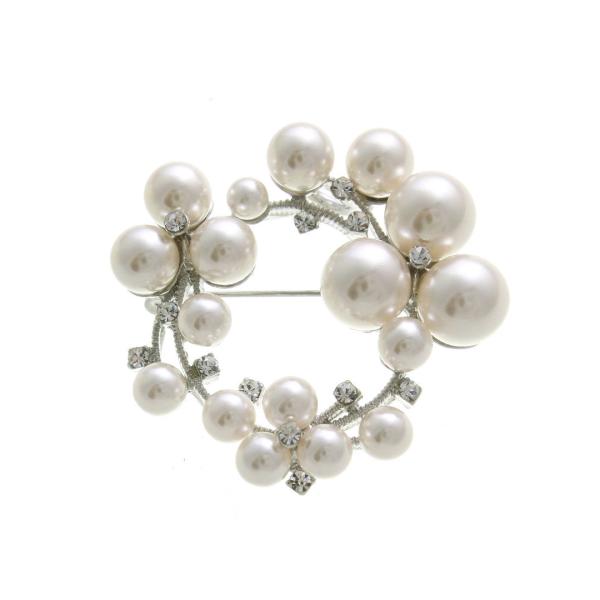 ブローチ パール ストーン サークル (S) 上品 パーティー アクセサリー 入園式 入学式 レディース BR-128 mbgt