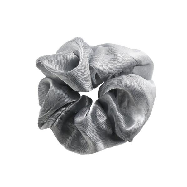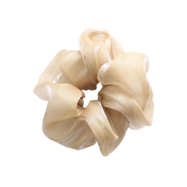 光沢をまとった軽やかなオーガンジーのシュシュ。程よくボリューム感もあり、結ぶだけで様になる華やかなシルエットです。上品な雰囲気なのでオフィス使いなどの日常にぴったりな一品です。