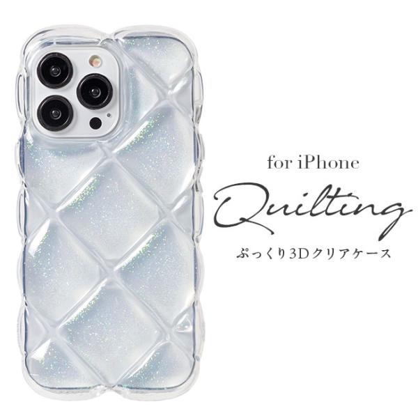 [メール便送料無料]iPhone キルティング風 クリアケース {2}【iPhoneケース 韓国 キルティングクッション ラメ ぷくぷく かわいい おしゃれ シンプル】