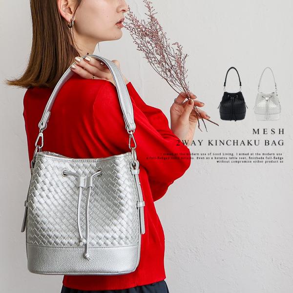 ショルダーバッグ レディース 斜めがけ 巾着バッグ ショルダー ワンハンドル 2way 編み込み sib-20095p aroco/アロコ
