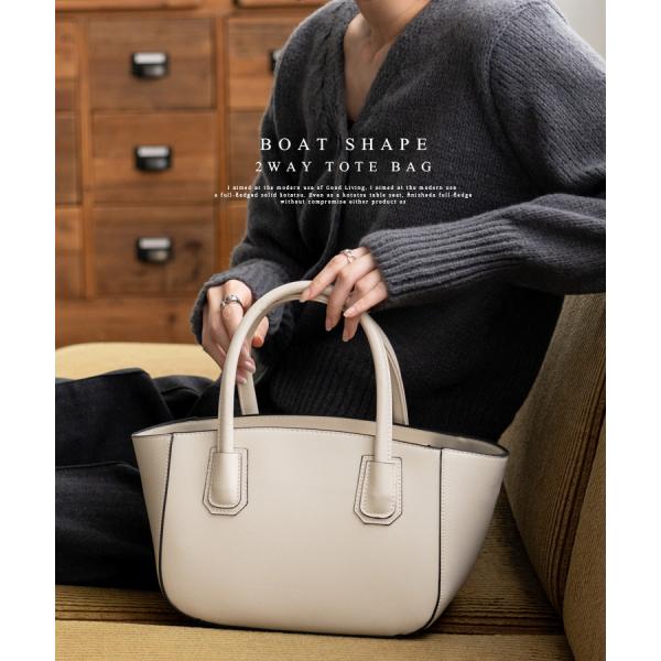 丸みを帯びた美フォルムの舟形ハンドバッグ。
