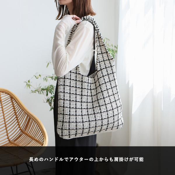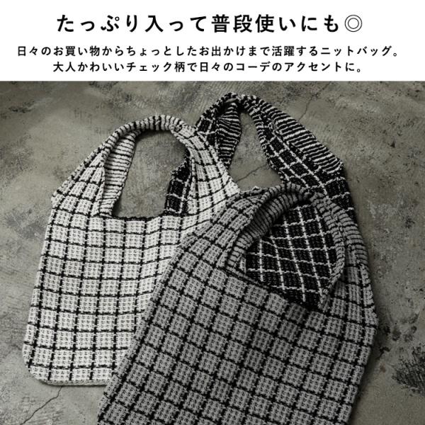 トートバッグ レディース ニットバッグ チェック柄 ソフトニット エコバッグ 肩掛け 軽量 サブバッグ nsb-30308z aroco/アロコ