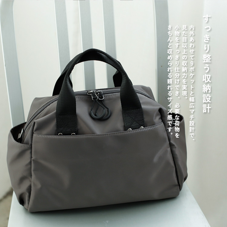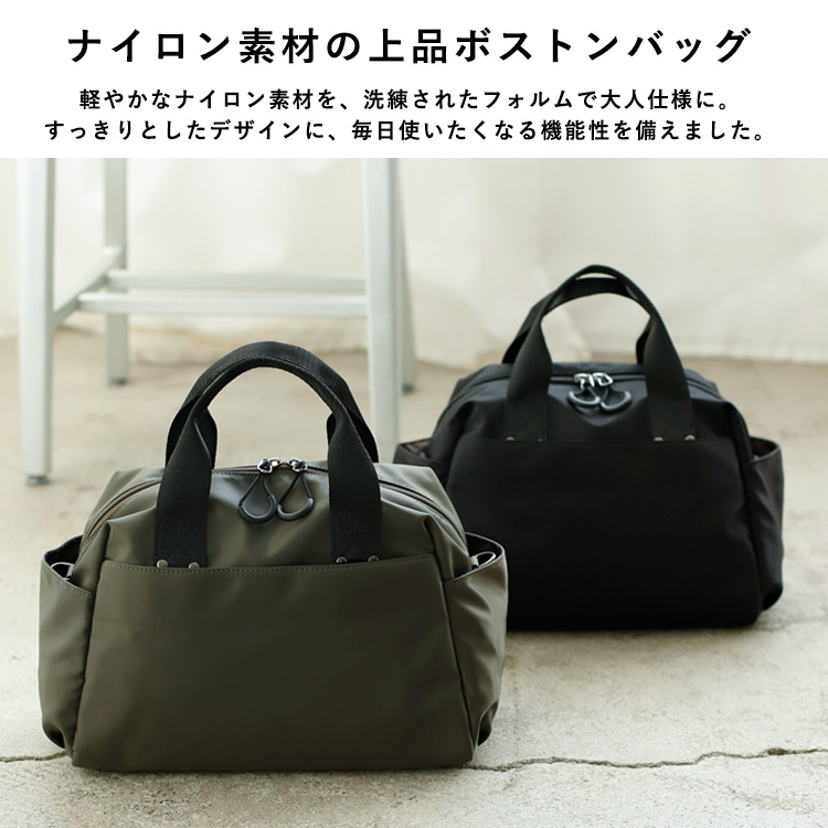 ボストンバッグ レディース 小さめ 9ポケット ナイロン ファスナー付 軽量 2way ショルダーバッグ 斜め掛け 肩掛け 撥水 b5 軽い nsb-40011z aroco アロコ