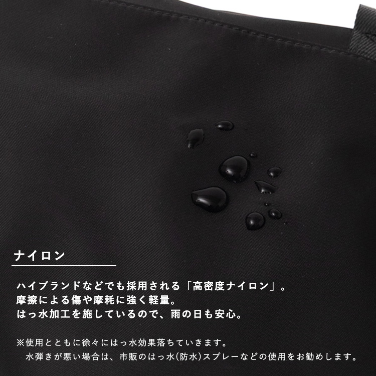 高密度ナイロン素材を使用し、見た目以上に軽やかな持ち心地を実現。
