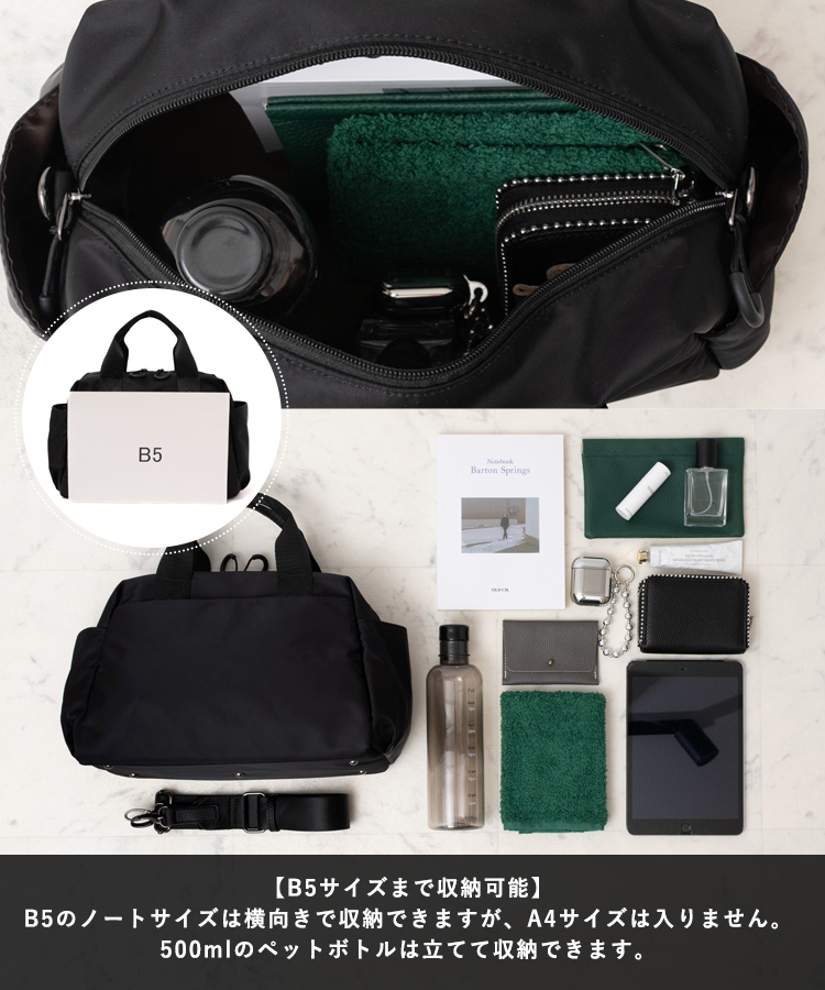 ミニボストンバッグ レディース 軽量 b5 テープショルダーベルト 2way 高見え 太ショルダーベルト ハンドバック 柔らかい 高級感 inb-10070p aroco/アロコ