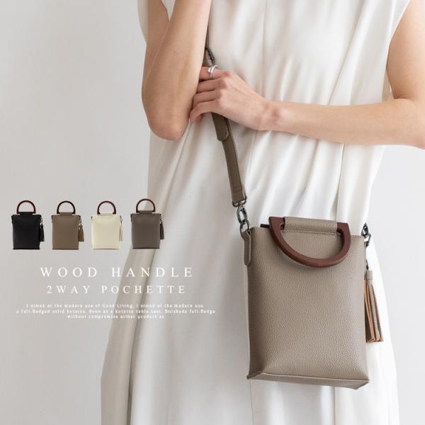 スマホショルダー レディース 軽い スマホポシェット ウッドハンドル おしゃれ ショルダーバッグ 小さめ ミニバッグ ハンドバッグ inb-90031p Depral/デプラル