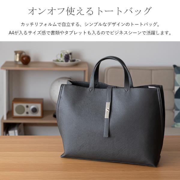 マチ広で収納量抜群、3スペースのお仕事トートバッグ。