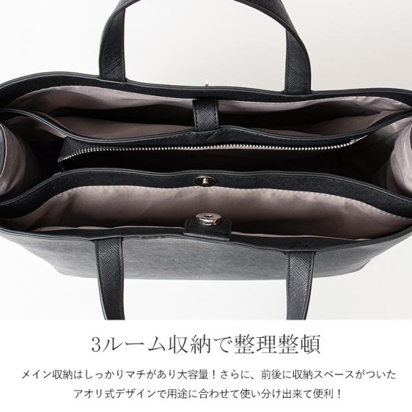 トートバッグ レディース 大きめ 通勤 3ルーム収納 a4 自立 マチあり 大容量 3スペース ショルダーバッグ おしゃれ シンプル 2way sib-20001p aroco/アロコ