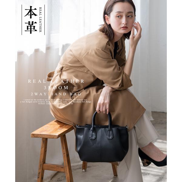 本革3スペースハンドバッグ