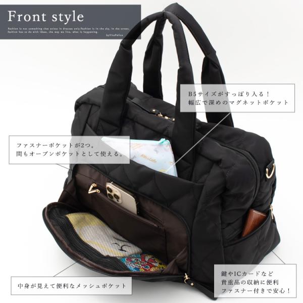 マザーズバッグ ボストンバッグ 大きめ 軽い 人気 キルティング トートバッグ トート 黒 ナイロン A4 おしゃれ シンプル 大容量 vinb-9c039z aroco/アロコ