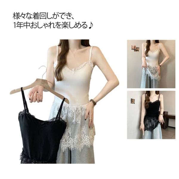 キャミソール 付け裾 キャミソール レース ノースリーブ トップス ノースリーブ タンクトップ スカラップ インナー レイヤード レース切り替え 裾フ