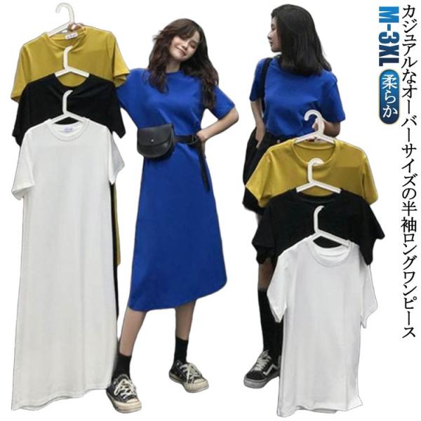 ワンピース ワンピース 半袖 ワンピ 夏 ロング丈 レディース UVカット レディース 半袖 tシャツワンピース ロングカットソー クルーネック 夏