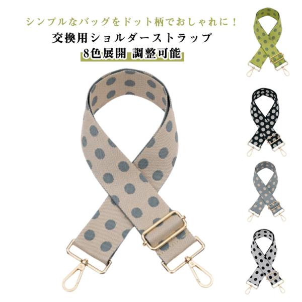 バッグストラップ 太め 水玉 長さ調節 ショルダーストラップ ショルダーベルト 太め 金具 バッグ用 後付け 肩掛けベルト ドット ベルト 付け替え