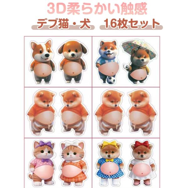 16枚セット ストレス解消 16枚セット かわいい お腹 猫 デブ猫 マシュマロシール 柔らかい腹 ステッカー もっちりスクイーズ ふわふわ おしりシ