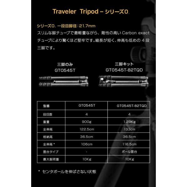 最新のセンターボール雲台と最新トラベラー三脚1型5段のお得なキットです。 三脚は、GT1555Tで、Carbon eXactチューブの採用により、堅牢性と安定性が向上しています。また本三脚には、スピーディーなセットアップを可能にする使用感が向上した新ロック機構''トラベラーGロック''が搭載されています。 キットのセンターボール雲台は、スムーズな動きと正確なロックを実現するGH382TQDです。 ショートポールとショルダーストラップが標準同梱されています。
