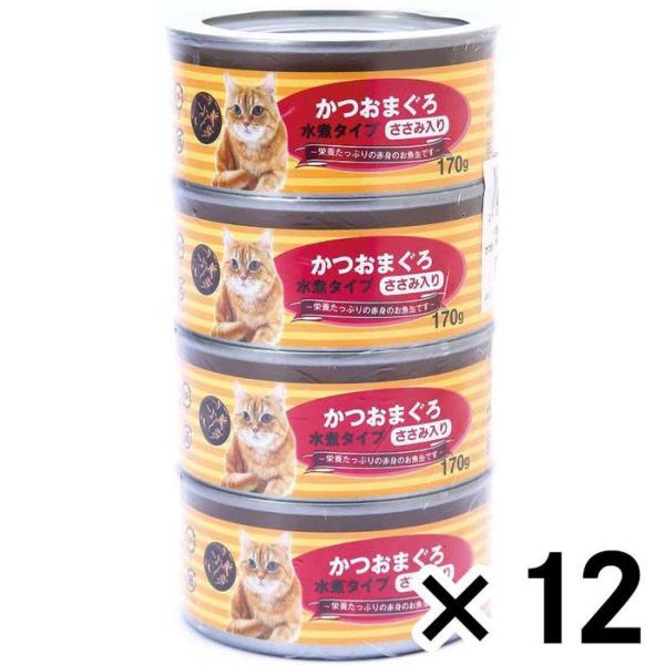 猫の缶詰170g×4Pかつおまぐろ赤身水煮 ささみ入り ×12個セット 4缶×12個セット 水煮タイプ-ささみ入り ビバホーム