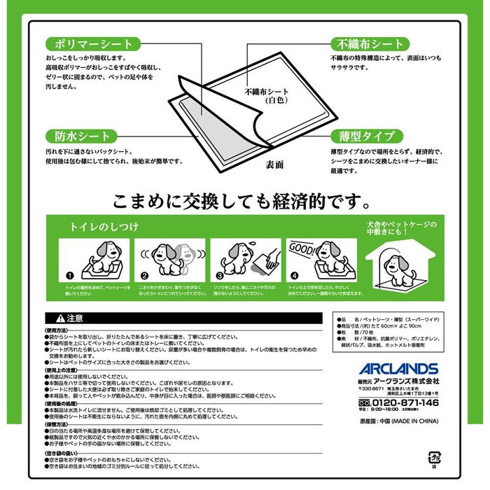 ●ポリマーシート:おしっこをしっかり吸収します。ゼリー状に固まるのでペットの足や体を汚しません。