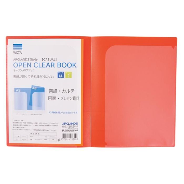 WIZAオープンクリアブックカジュアル A4サイズ 2ポケット A4 オレンジ ビバホーム