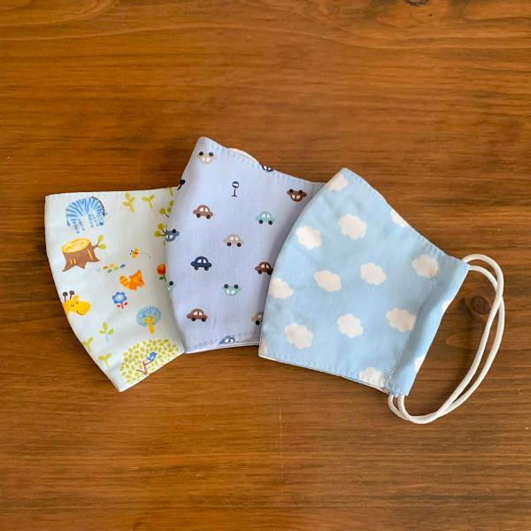 布マスク 男の子3枚セット 日本製 子供 子供用 マスク 立体型 子供 BOYSET 洗える かわいい 動物 乗り物 綿 布 幼児 雲車動物柄