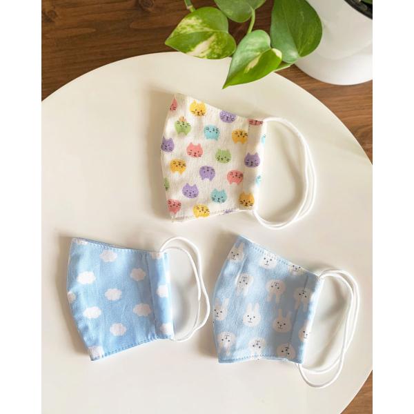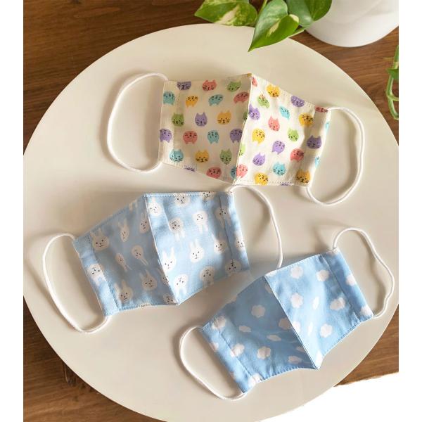 布マスク 女の子3枚セット 日本製 子供 子供用 ガーゼ マスク 立体型 子供 GIRLSET 洗える かわいい 動物 綿 布 幼児 雲猫うさぎ柄
