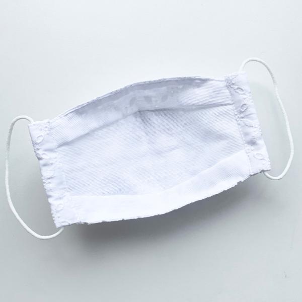 布マスク 日本製 レースマスク 夏用 大臣マスク 折り返し 白 おしゃれ レース 舟形 高島ちぢみ 布 コットン 女性 薄手 コットンレース 2サイズ
